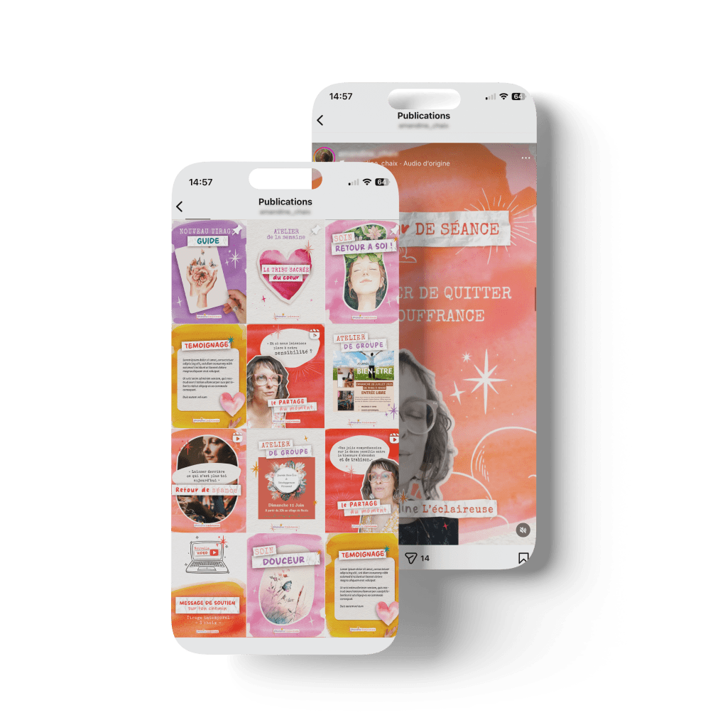 Son univers est cohérent sur toutes ses plateformes. Sa créativité s’exprime dans un cadre solide, aligné avec son positionnement de thérapeute holistique. Son branding est devenu un véritable outil de visibilité et de crédibilité ✨